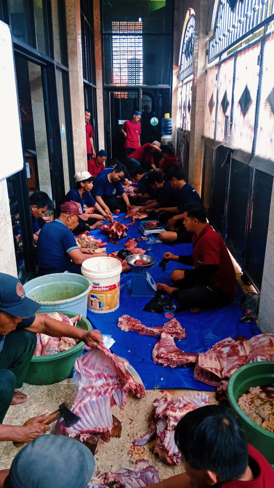 Foto Proses Pemotongan dan Penimbangan Daging Oleh Panitia Qurban 1444 H