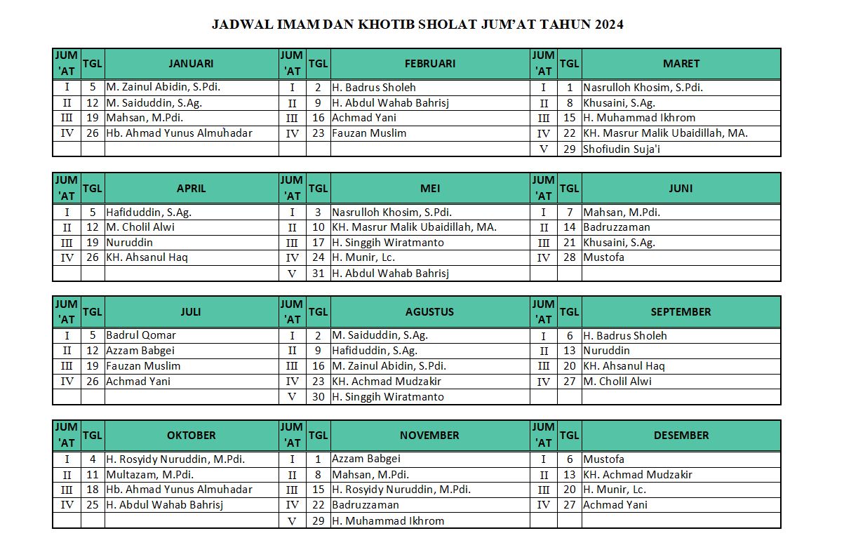 Jadwal Imam & Khatib Sholat Jum'at 2024